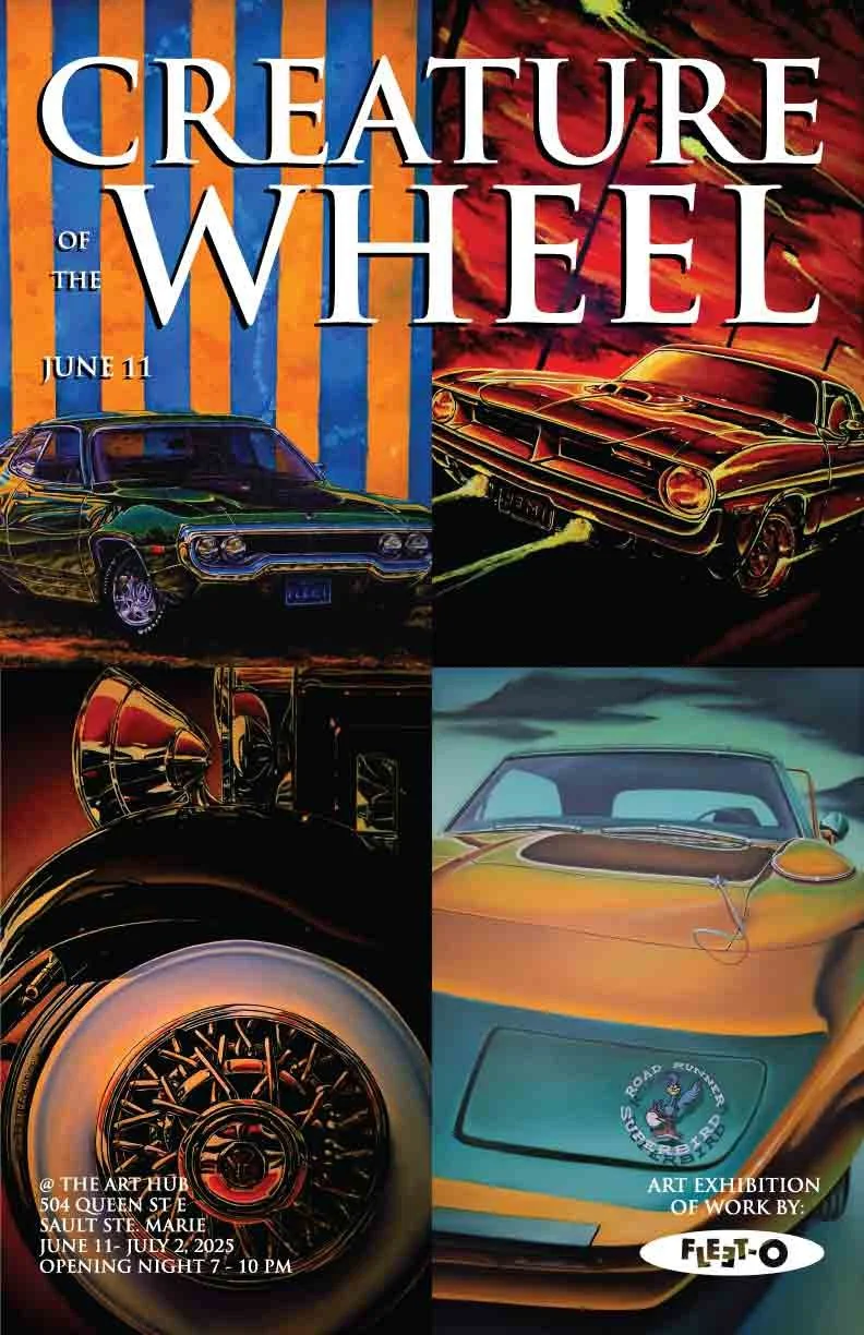 Everyone is invited to join us for an exhibition of work by FLEET-O. The CREATURE OF THE WHEEL exhibit will feature automotive related paintings by the artist. Opening night will be on June 11 from 5-10pm (yes, the poster says 7-10…). On this night the artist will also have available FLEET-O posters, swag and other miscellany for sale. Light snacks and refreshments will be available.